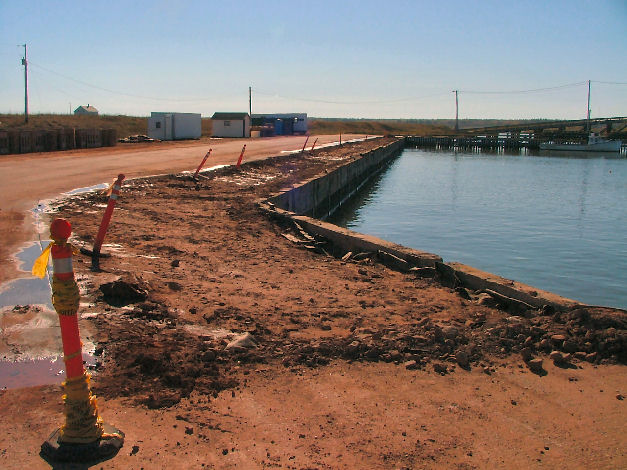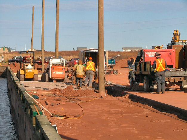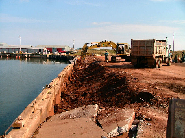This contract was awarded to Curran & Briggs by Public Works and Government Services Canada, extensive repairs were carried out to the existing wharf structure at Skinner's Pond. Work involved removing existing wooden fenders, removing and replacing hoists, excavation and repair of existing wharf deck surfaces, pouring of concrete pads to secure hoists and asphalt paving.